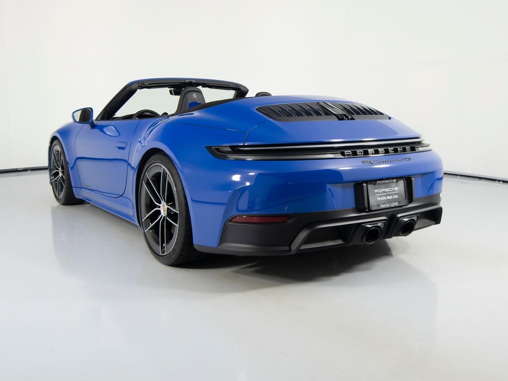 You are looking at a 2025 Porsche 911 Carrera 4 GTS Cabriolet with 4,773 miles. The options include: Exterior Mirror Base in Exterior Color, SportDesign Side Skirts, Rear Lid Grille Vertical Slat Inlays in Exterior Color, Front Axle Lift System, Brake Calipers in High Gloss Black, 20''/21'' Carrera Exclusive Design Wheels with Carbon Fiber Blades, Deviated Stitching Interior Package, Heated GT Sport Steering Wheel in Leather, Porsche Crest on Headrests (Front), Adaptive Sport Seats Plus (18-way) with Memory Package, Sport Seats Plus Backrest Shells in Leather with Painted Inlay, Ventilated Seats (Front), Steering Column Casing in Leather i.c.w. Memory Package, Interior Trim Inlays in Exterior Color with Trim in Black, Door-Sill Guards in Black Brushed Aluminum, Illuminated, BOSE Surround Sound System, Color Selection for Stitching in Deviated Color - Orange, HD-Matrix Design LED Headlights in Black, Night Vision Assist, Surround View with Active Parking Support, Lane Change Assist (LCA), Porsche InnoDrive incl. Adaptive Cruise Control (ACC) and Active Lane Keep (ALK).